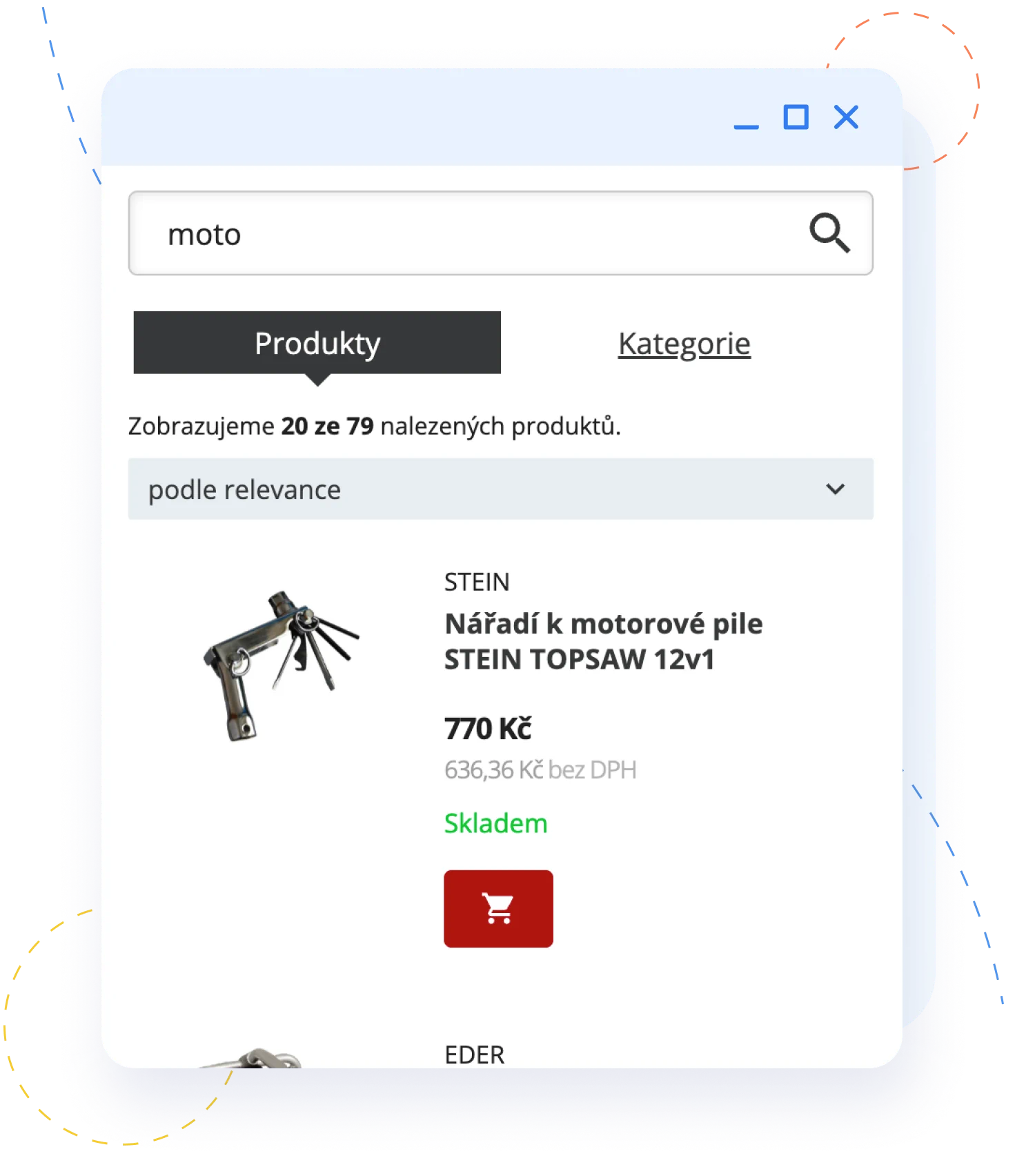 Zkraťte zákazníkovi cestu ke košíku na absolutní minimum. Hned ve výsledcích ukážeme u produktů vše důležité, aby se uživatel mohl rozhodnout rovnou a nemusel složitě klikat na další odkazy. Vše v designu, který ladí s e-shopem.