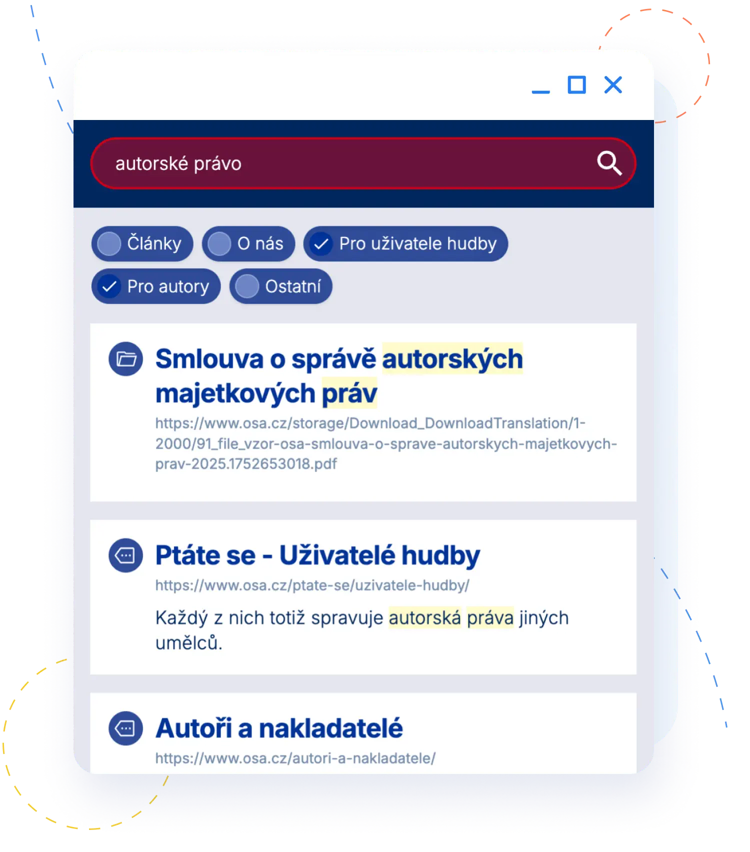 Organizace jako OSA spravují obrovské množství dat napříč doménami. Od aktuálních informací na hlavním webu, přes magazín Autor in, až po historický archiv nosičů a publikací. Každý den v textech a dokumentech hledá veřejnost i zaměstnanci, pro které je vyhledávání klíčovým pracovním nástrojem. Search Ready propojuje celý tento ekosystém do jednoho intuitivního okna.